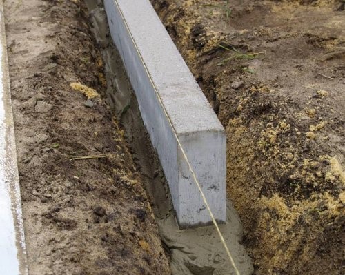 Если же мы имеем дело с основанием первого типа, то после выемки грунта (напомним, что котлован в этом варианте имеет глубину всего около 200 мм) на месте установки бордюра нужно будет дополнительно вырыть траншею глубиной 100 – 150 мм. На дне ее устраивается 5-сантиметровая подсыпка из утрамбованного гравия или щебня, поверх которой на густой цементный раствор устанавливается бордюр.