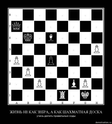 Жизнь - не зебра из черных и белых полос, а шахматная доска. Здесь все зависит от твоего хода.