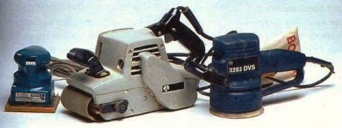 Три самых распространенных типа ручных шлифовальных машин (слева направо): дисковая машина, ленточная машина и эксцентриковая машина