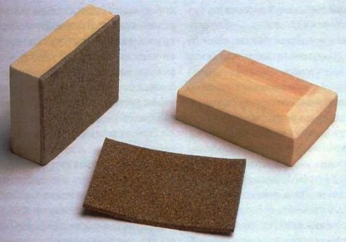 Можно сделать пробковую подкладку для наждачной бумаги, приклеив пробковый слой толщиной 3 мм к бруску из мягкой древесины размером где то 7 x 8 см. Скруглите верхние края бруска