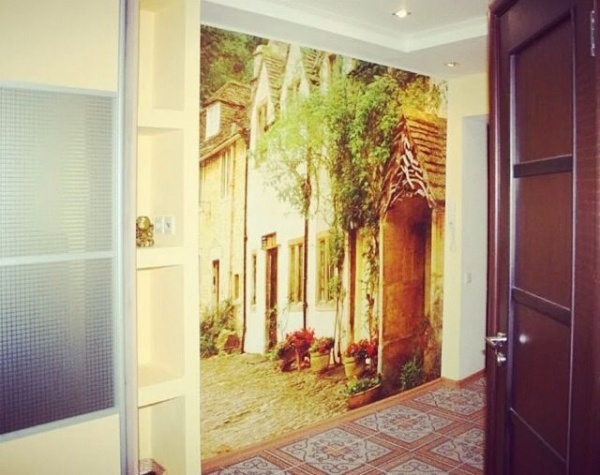 - Фотоизображения с ярко выраженной перспективой, уходящей вглубь, следует размещать на противоположной от входа стене коридора. Наклеенные на боковые поверхности, они будут «ломать» пространство, ухудшать восприятие рисунка;